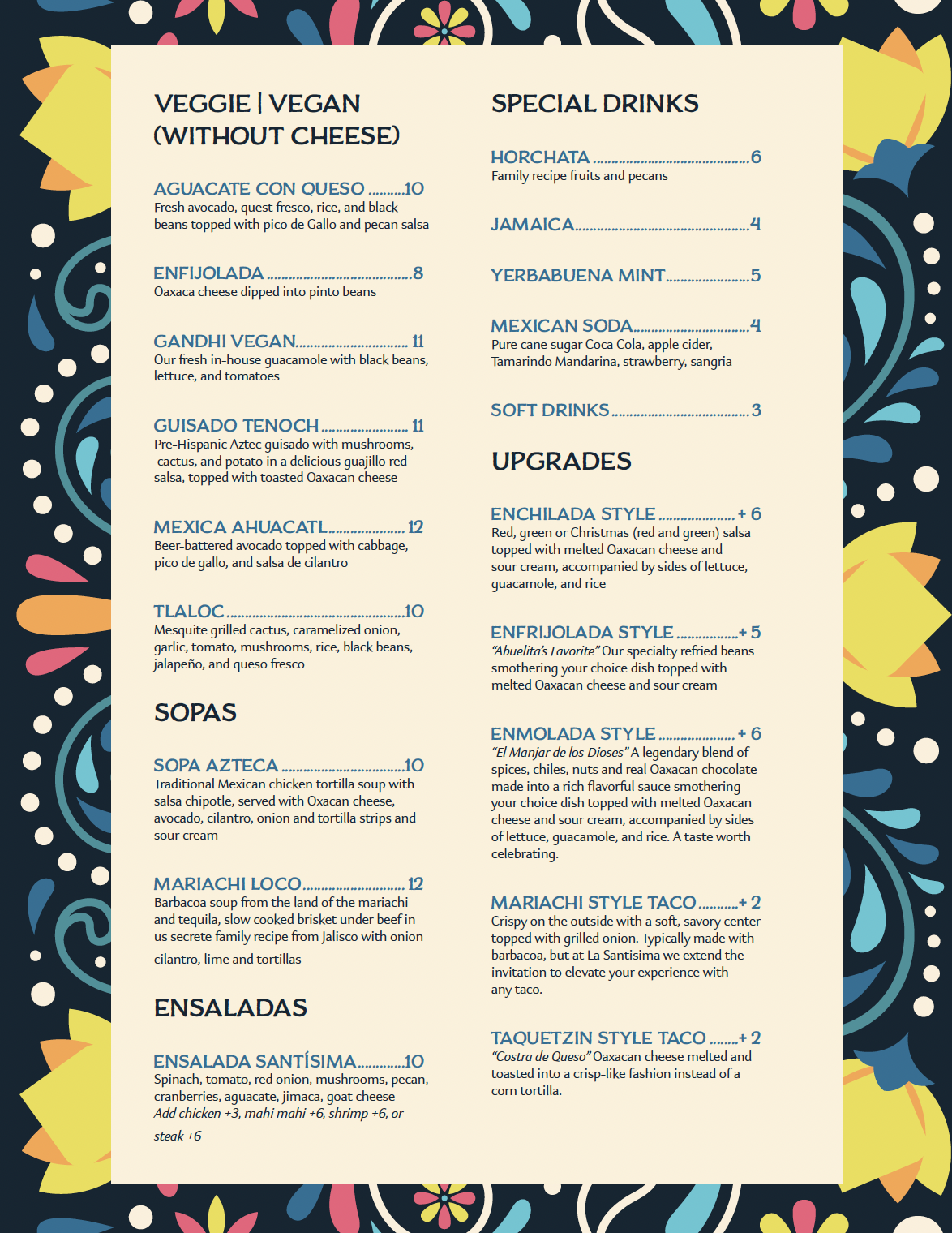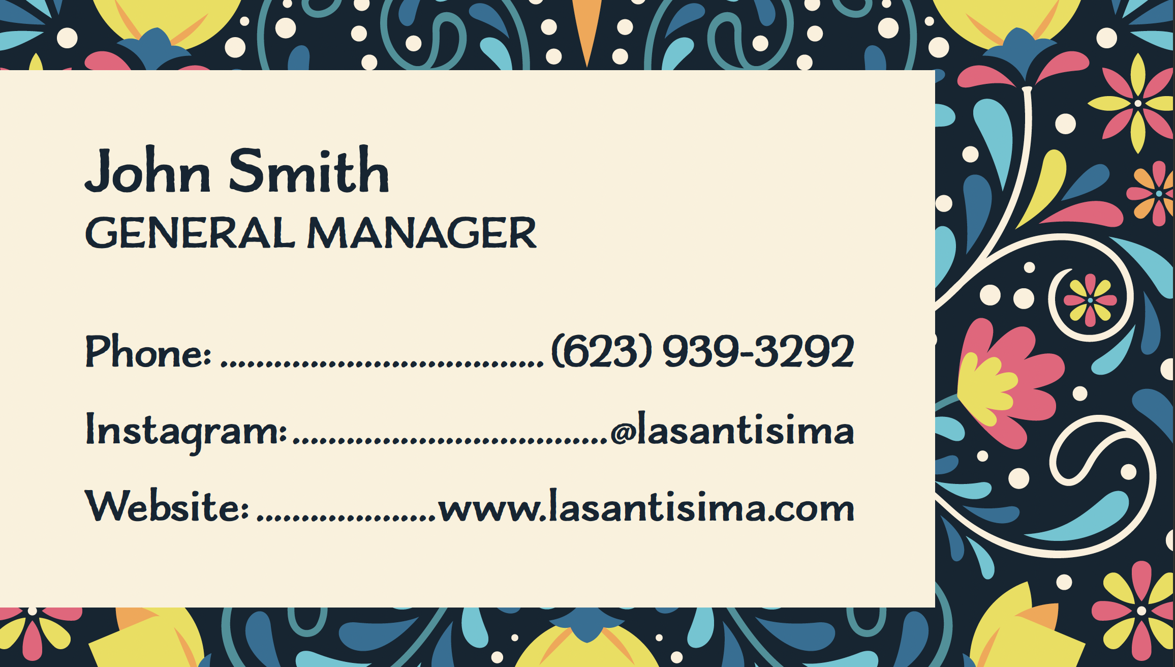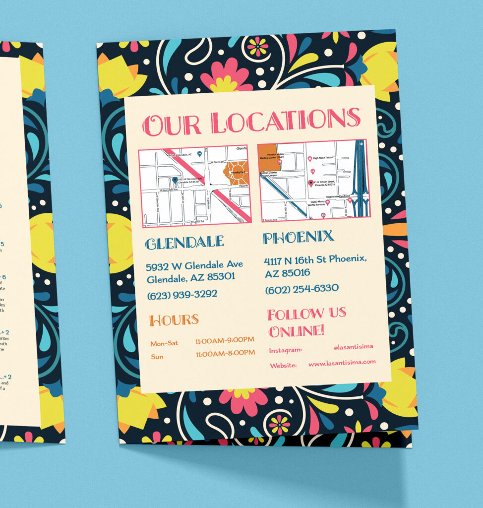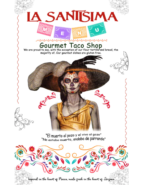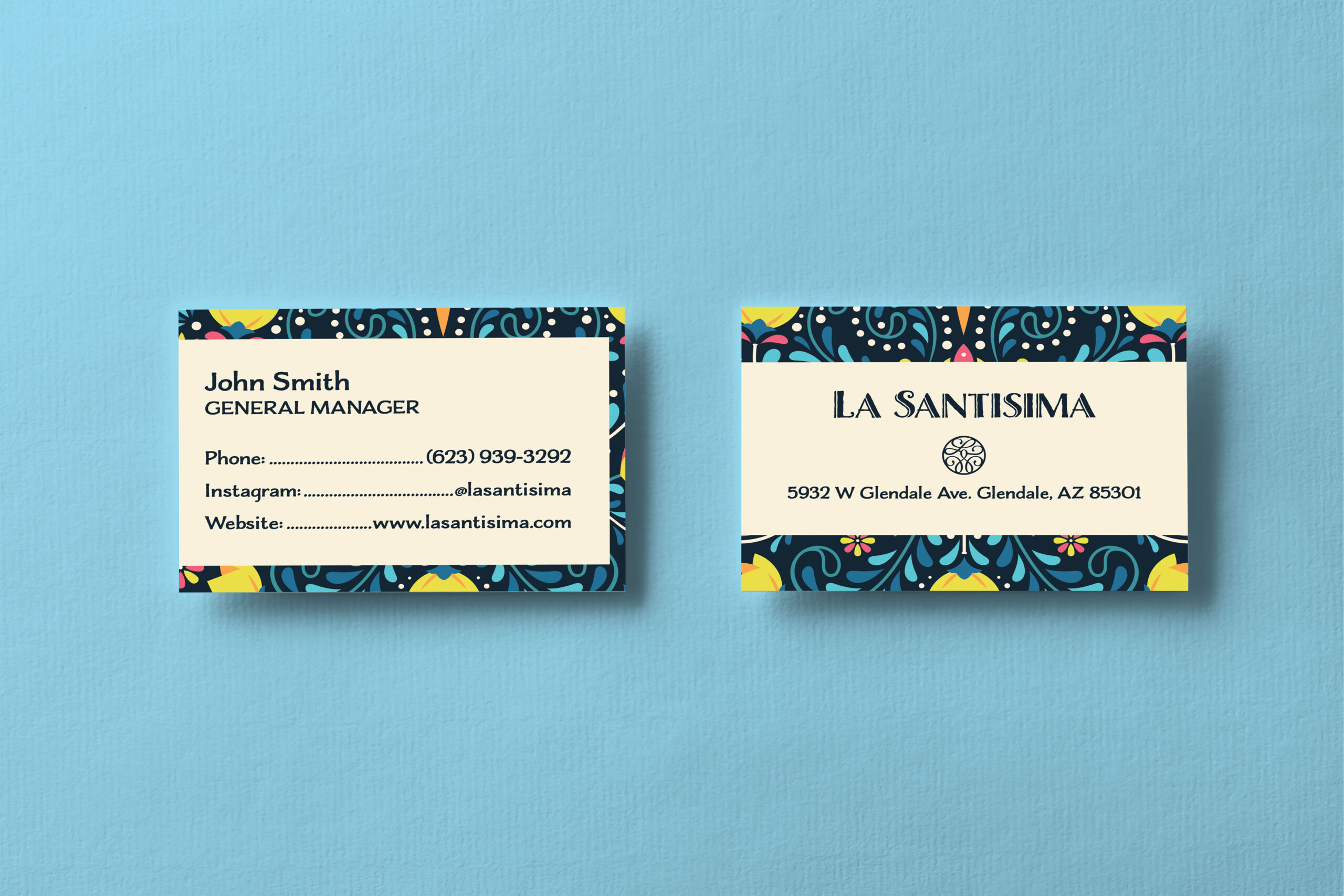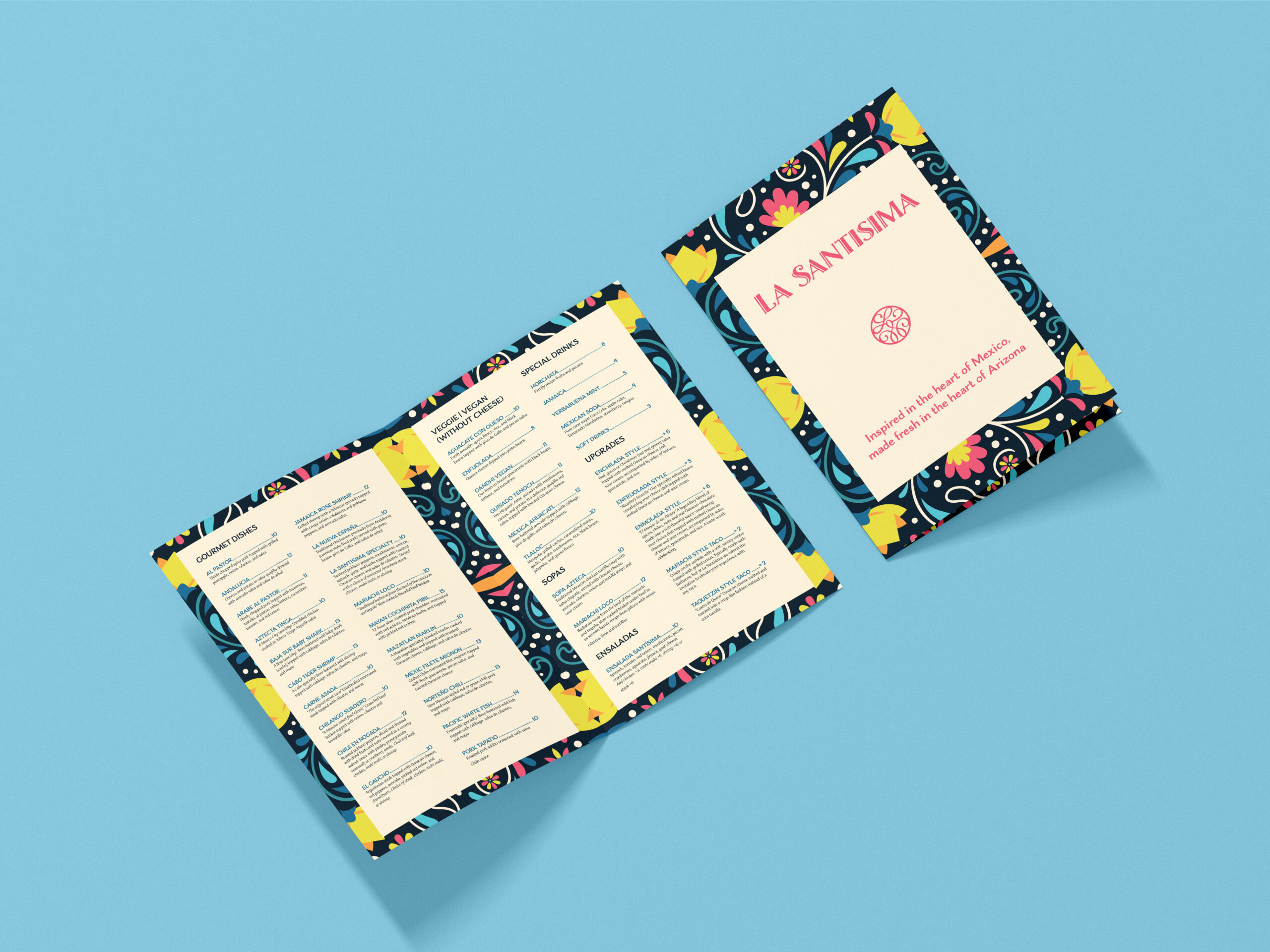 La Santisima’s menu was outdated and needed a redesign to help establish their brand as a Gourmet Taco Shop. While still maintaining the Mexican culture feel that is found in the original menu, I designed an elegant, simple and easier to read menu that followed an organized structure and gave the menu a more gourmet feel. The second step was to create a business card that also captured the same elements as the menu to make the brand feel more elegant, cohesive and organized.