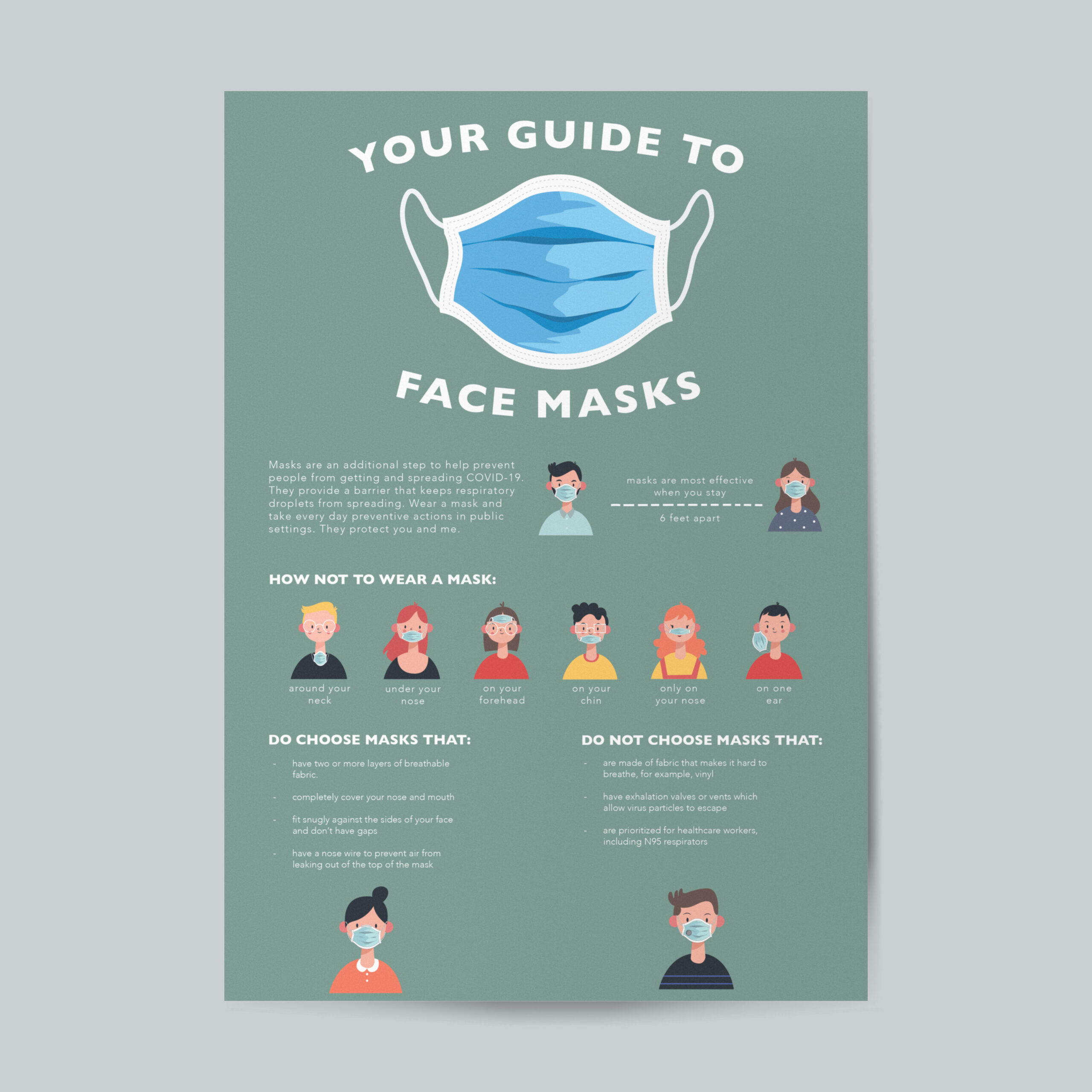 The COVID-19 pandemic came with mask mandates and restrictions that caused an uproar in the United States. There were debates on whether or not masks were effective or if they were just a way for the government to control the country. In order to educate the public on the importance of masks and try to persuade them to wear them, I created a call to action poster and Infographic on masks. Using information from the CDC, the call to action poster urged those to wear their masks as well as gave information on when and where to wear masks. The second step was to create an infographic that effectively conveyed how to wear a mask correctly using information from the CDC as it was the most accurate at the time.