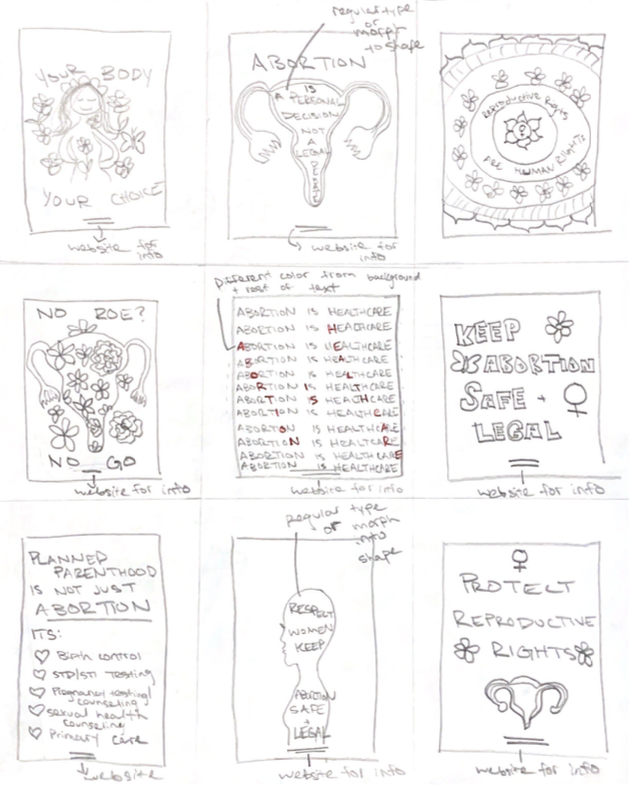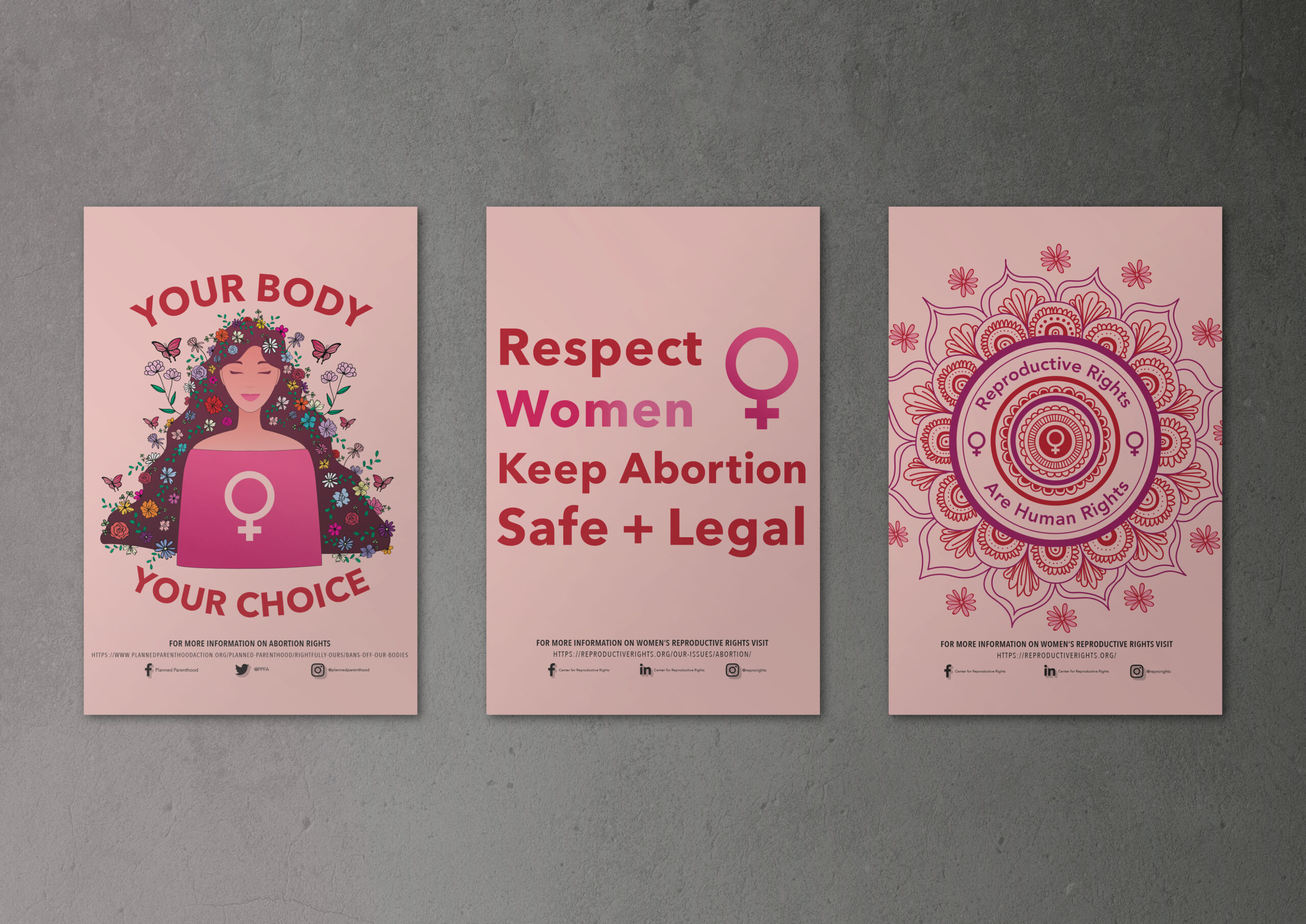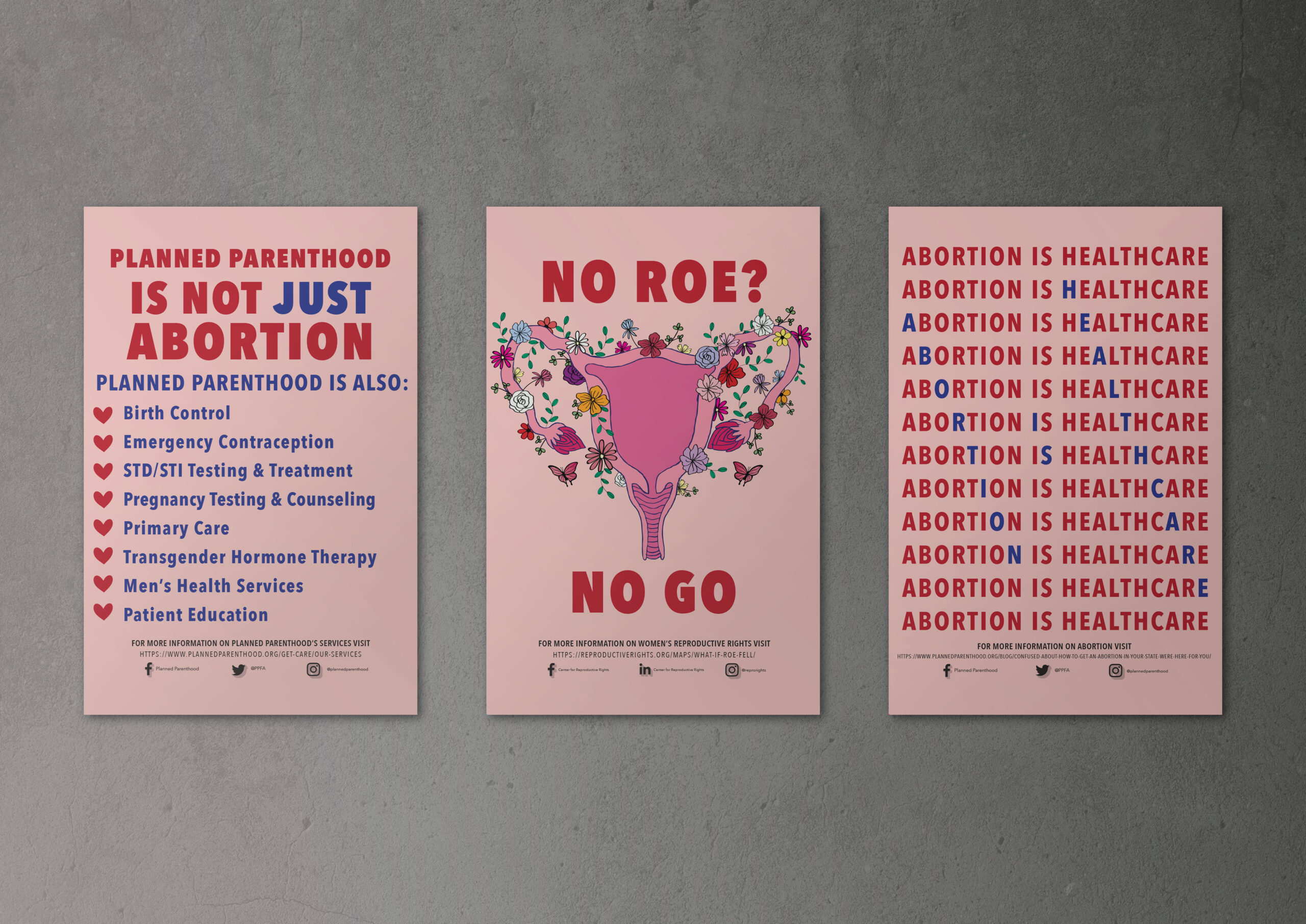 With all the events occurring regarding the overturn of Roe vs. Wade, creating a series of posters and artwork on the topic will help inform the public of the result in changes to women’s healthcare after the overturning. The issue with this topic is that most of the public do not know the extent of healthcare offered for women that is not just abortion and the overturning Roe vs. Wade makes it harder for women to receive this healthcare. The creation of the 6 statement posters and artwork will offer more information that could help with persuasion to create state laws that protect the healthcare that Roe v. Wade did, and spread information.